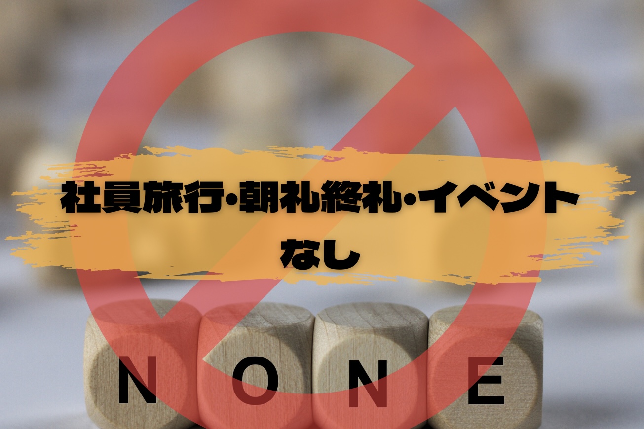 社員旅行や朝礼終礼や無駄な飲み会やイベントないです。勉強会も全て勤務時間内に行います。土日休みも可能です。