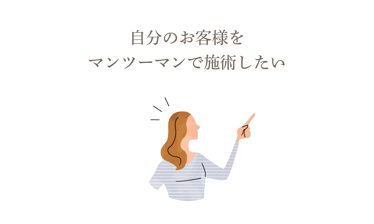 最初から最後まで自分のお客様とマンツーマンなので、リラックスして施術を受けていただけて、再来率もとてもいいと思います。