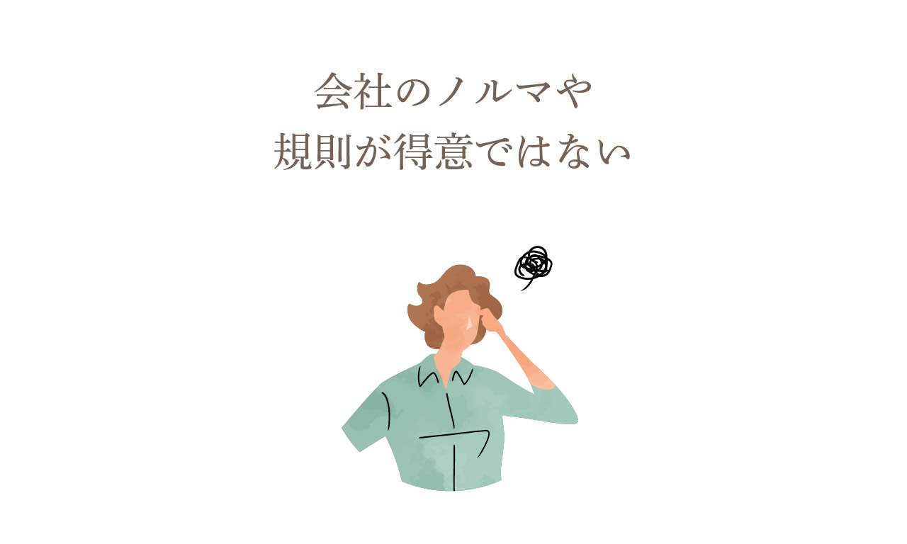 会社のよくわからないルールやノルマも特になく、基本的に自由自適に営業可能です。正社員雇用である週休二日で一日8時間労働といった縛りや、業務委託でも一日6時間以上の労働勤務や毎月何日以上の出勤といったノルマは一切ありません。