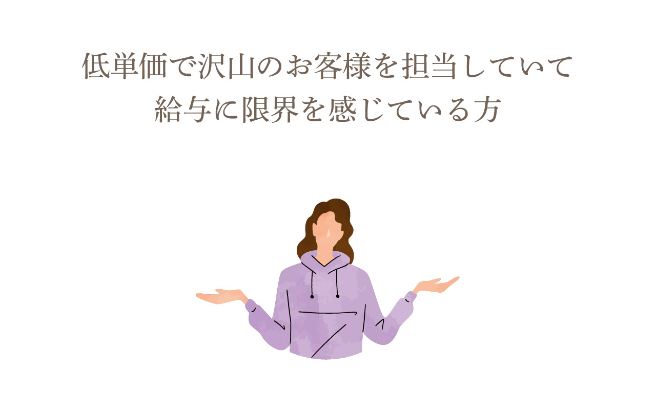 - 低単価で沢山のお客様を担当していて給与に限界を感じている方