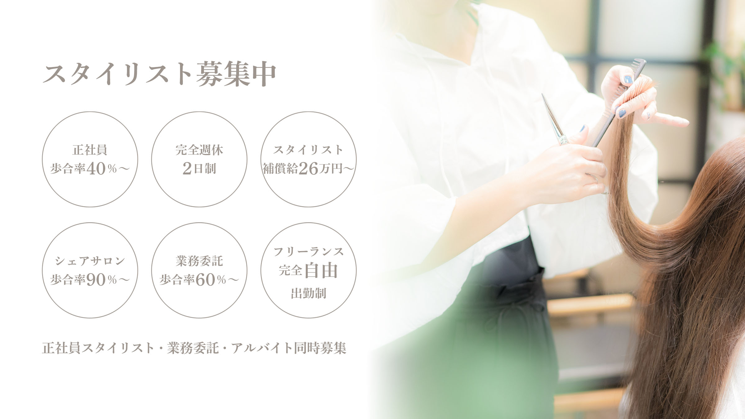 正社員スタイリストは26万円の給与保証。売上に関係なくお支払いします。期限もありません。